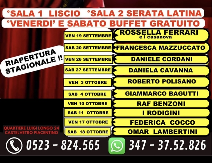 PER PRENOTAZIONI CHIAMA IN SEGRETERIA NON PRIMA DEI 15 GIORNI DALL'EVENTO DESIDERATO 0523-824565 OPPURE SOLO PER PRENOTAZIONI E' ATTIVO IL NUMERO DI WHATSAPP 3343752826